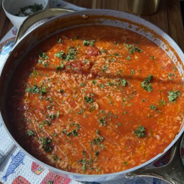 A traditional Portuguese tomato rice made malandrinho style, loose, saucy, and full of rich tomato, garlic, and vinho verde flavour. Simple ingredients come together to create a comforting classic dish that pairs perfectly with fish or meat or can be enjoyed on its own.