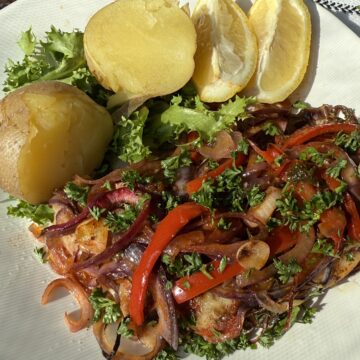 Inspired by the coastal cooking of the Algarve, this dish is all about fresh ingredients, good olive oil, garlic, onions, and white wine. It’s rustic, unfussy, and comes together in one pan.